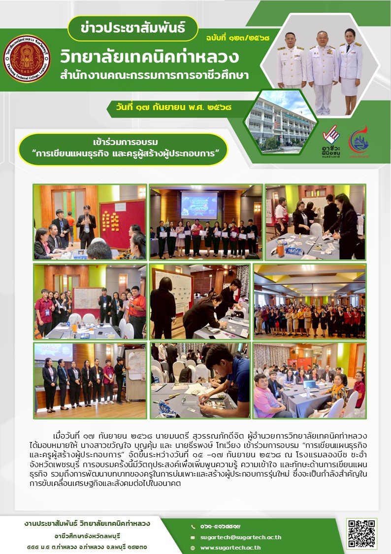เข้าร่วมการอบรม “การเขียนแผนธุรกิจ และครูผู้สร้างผู้ประกอบการ”