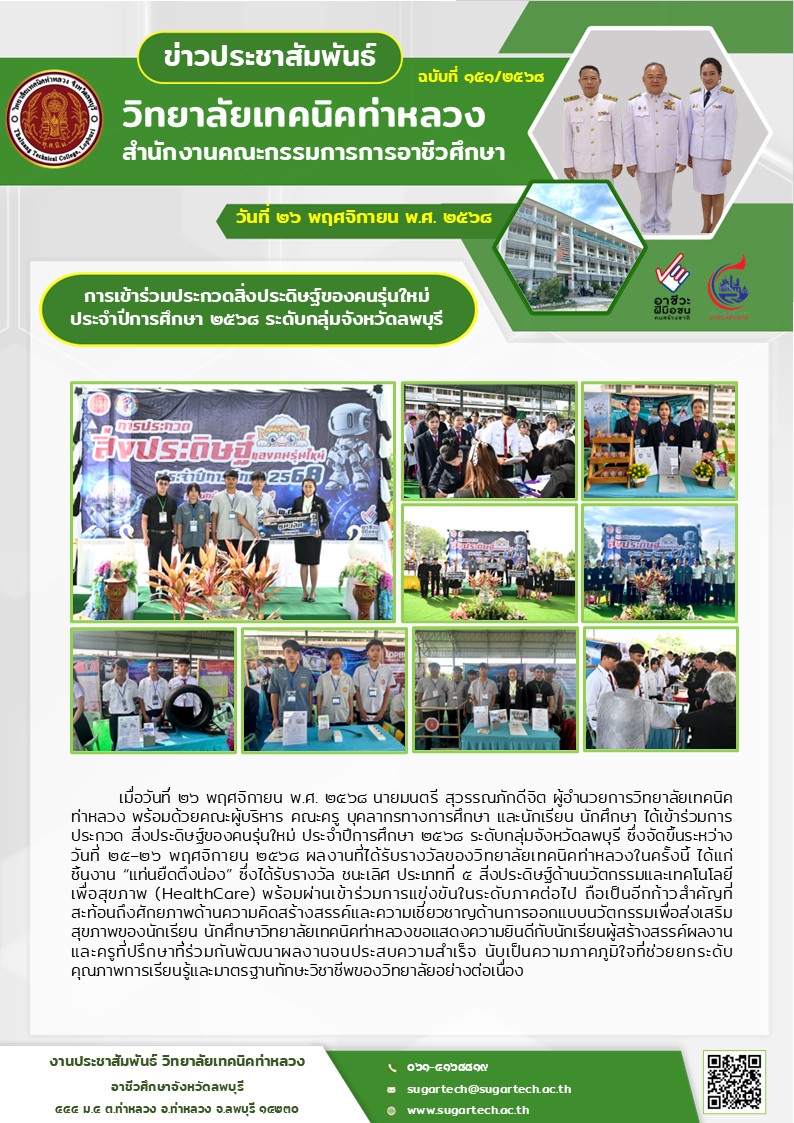 การเข้าร่วมประกวดสิ่งประดิษฐ์ของคนรุ่นใหม่ประจำปีการศึกษา ๒๕๖๘ ระดับกลุ่มจังหวัดลพบุรี