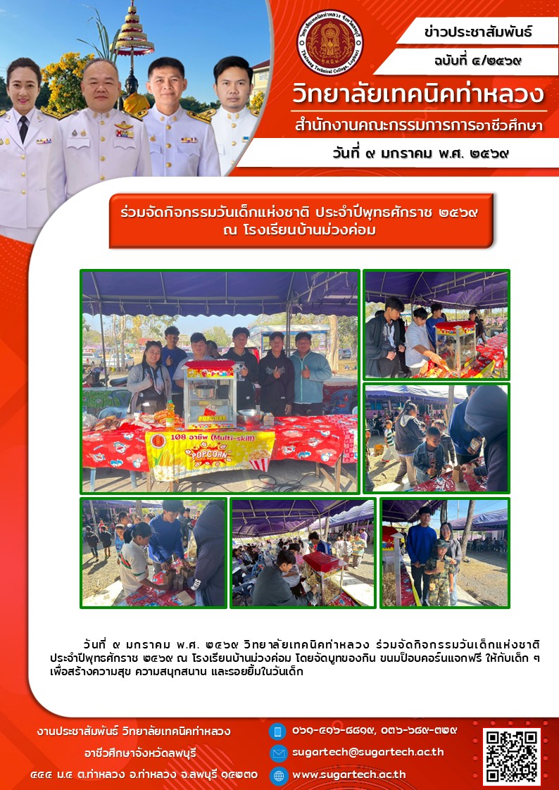 ร่วมจัดกิจกรรมวันเด็กแห่งชาติ ประจำปีพุทธศักราช ๒๕๖๙ ณ โรงเรียนบ้านม่วงค่อม