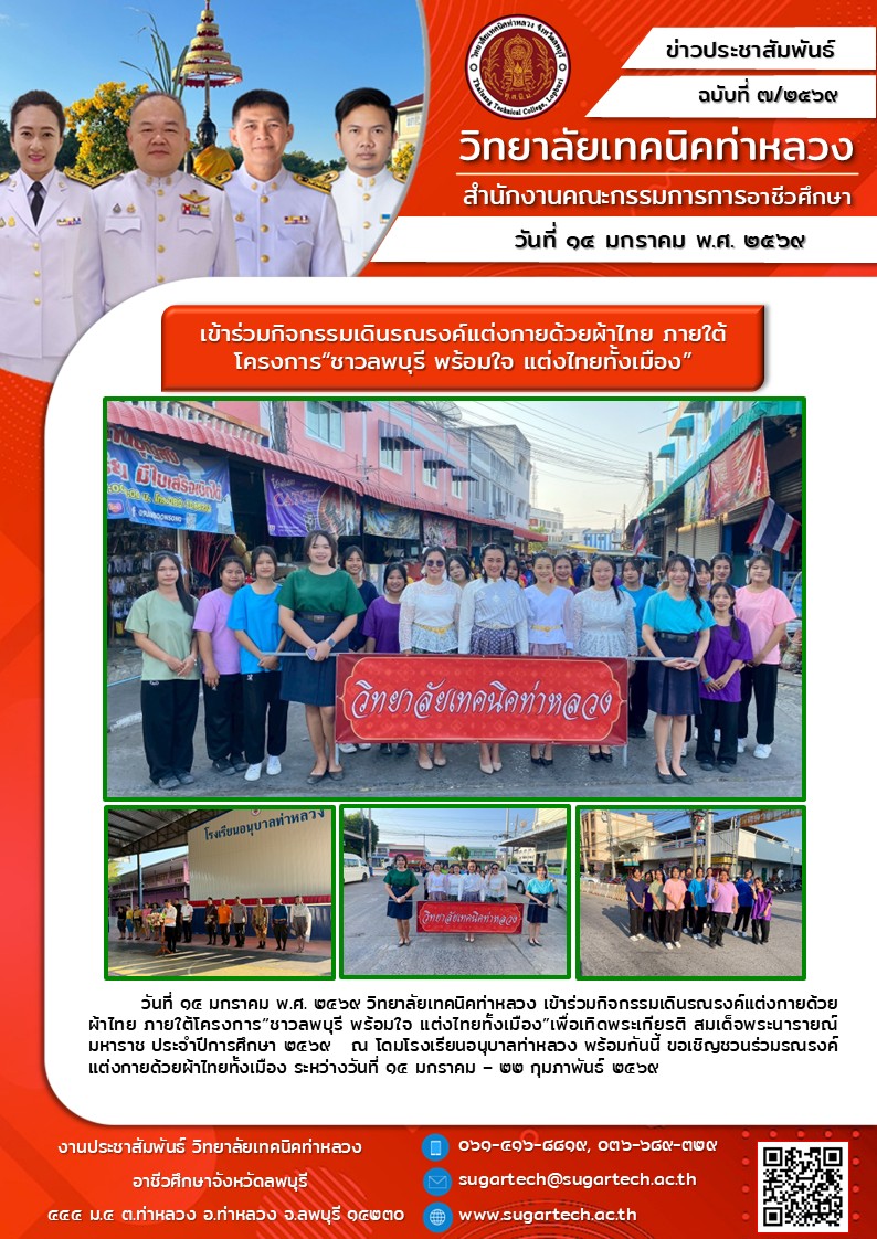 เข้าร่วมกิจกรรมเดินรณรงค์แต่งกายด้วยผ้าไทย ภายใต้โครงการ“ชาวลพบุรี พร้อมใจ แต่งไทยทั้งเมือง”