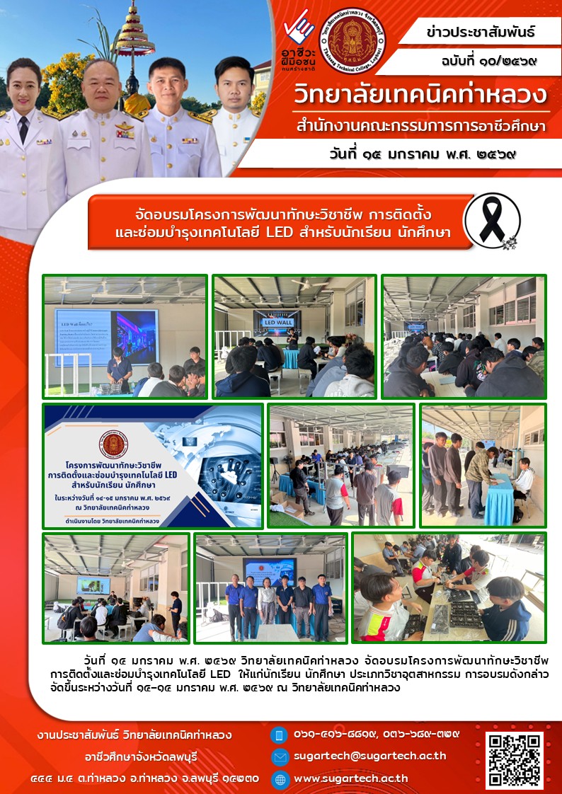 จัดอบรมโครงการพัฒนาทักษะวิชาชีพ การติดตั้งและซ่อมบำรุงเทคโนโลยี LED สำหรับนักเรียน นักศึกษา
