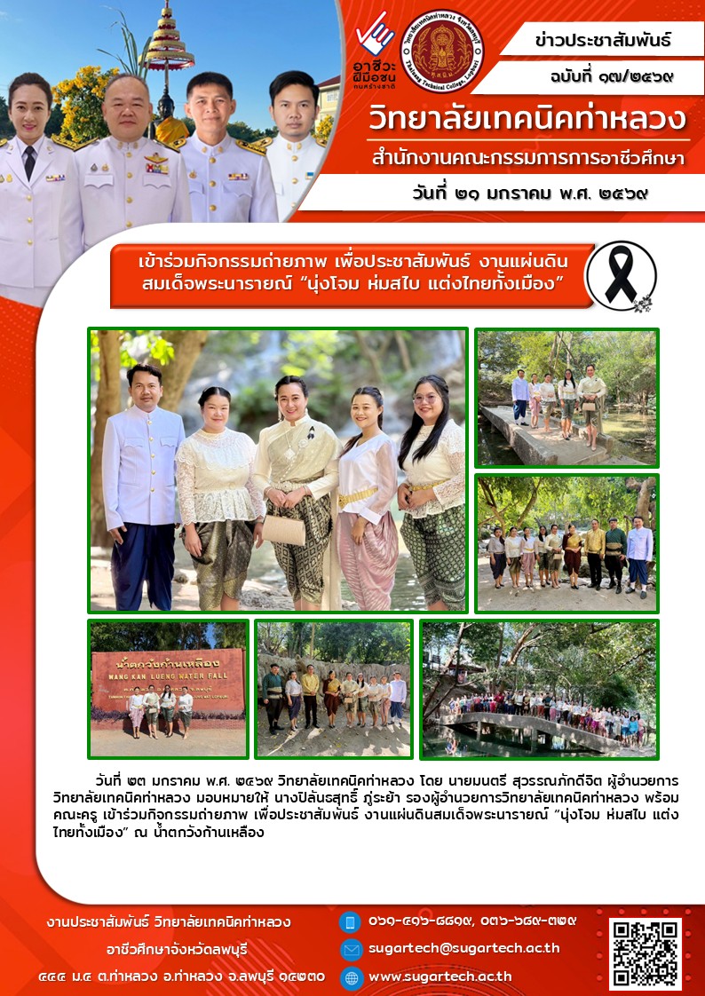 เข้าร่วมกิจกรรมถ่ายภาพ เพื่อประชาสัมพันธ์ งานแผ่นดิน สมเด็จพระนารายณ์ “นุ่งโจม ห่มสไบ แต่งไทยทั้งเมื