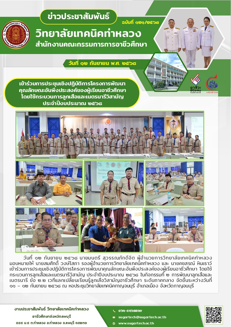 เข้าร่วมการประชุมเชิงปฏิบัติการโครงการพัฒนาคุณลักษณะอันพึงประสงค์ของผู้เรียนอาชีวศึกษา โดยใช้กระบวนก
