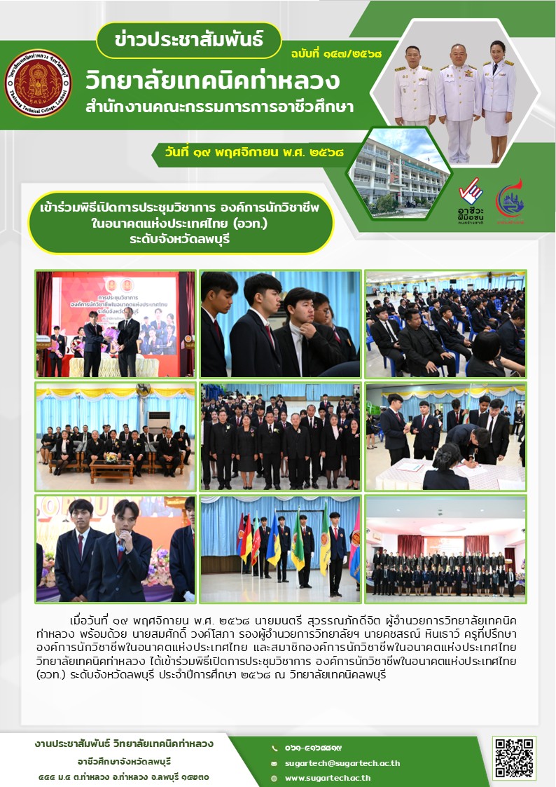 เข้าร่วมพิธีเปิดการประชุมวิชาการ องค์การนักวิชาชีพในอนาคตแห่งประเทศไทย (อวท.) ระดับจังหวัดลพบุรี