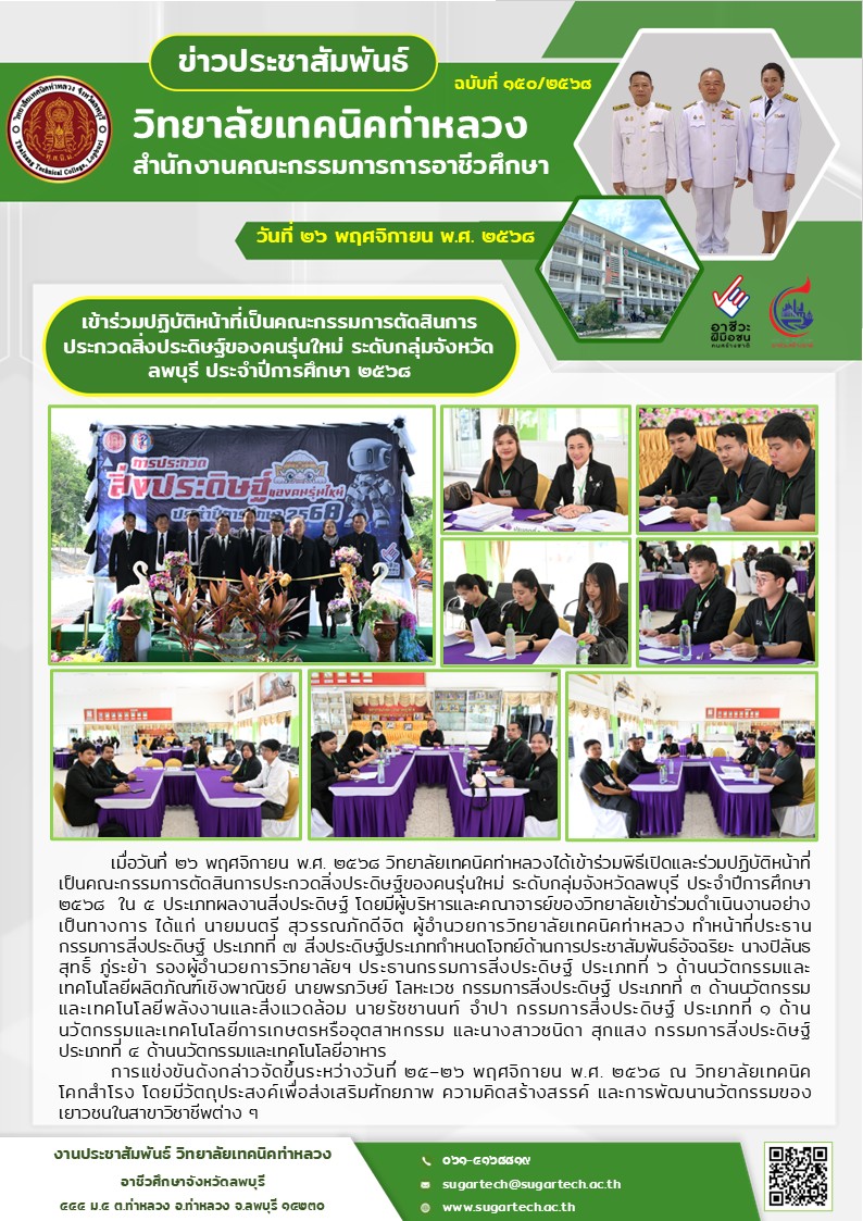 เข้าร่วมปฏิบัติหน้าที่เป็นคณะกรรมการตัดสินการประกวดสิ่งประดิษฐ์ของคนรุ่นใหม่ ระดับกลุ่มจังหวัดลพบุรี