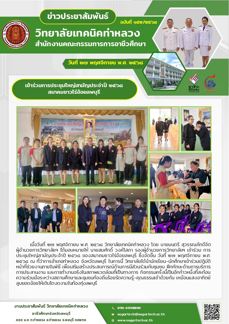 เข้าร่วมการประชุมใหญ่สามัญประจำปี ๒๕๖๘ สมาคมชาวไร่อ้อยลพบุรี